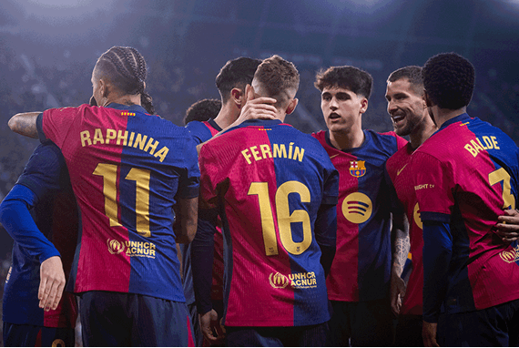 Посмотрите, как звезды ФК «Барселона» гонятся за победой и доминируют в лиге, в прямом эфире и вблизи.
