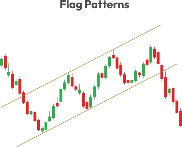 A flag pattern is created when a market's support and resistance lines run parallel to each other, either sloping upwards or downwards. It culminates in a breakout in the opposite direction to the trendlines.