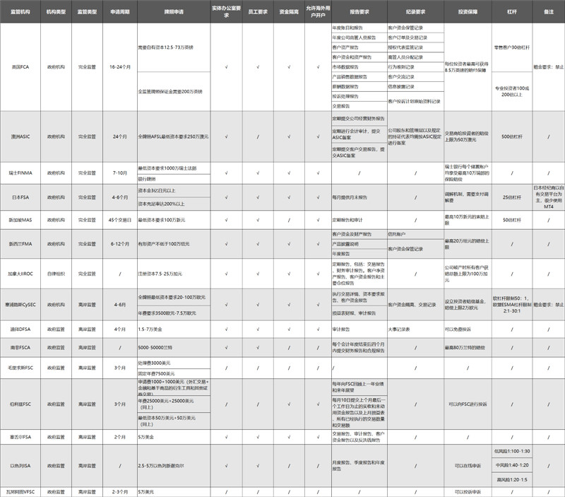 Other comprehensive regulations generally include 3-5 items such as regular reports, audit reports, and customer reports, such as ASIC in Australia and FMA in New Zealand. Some regulations also require proof of fund segregation. Although the intensity and scope are not as strong as those of FCA, the prevention of general risks is still relatively effective.