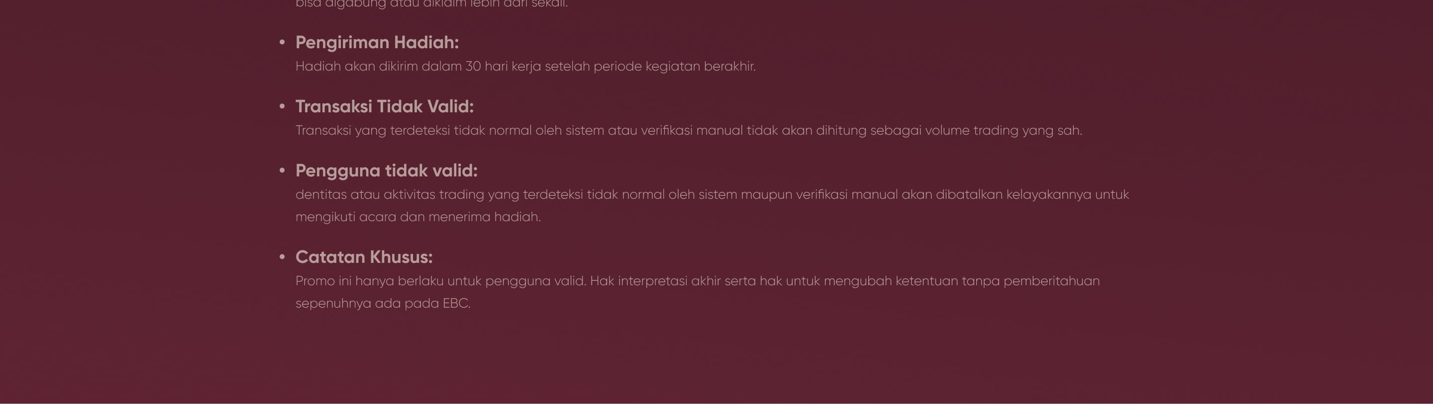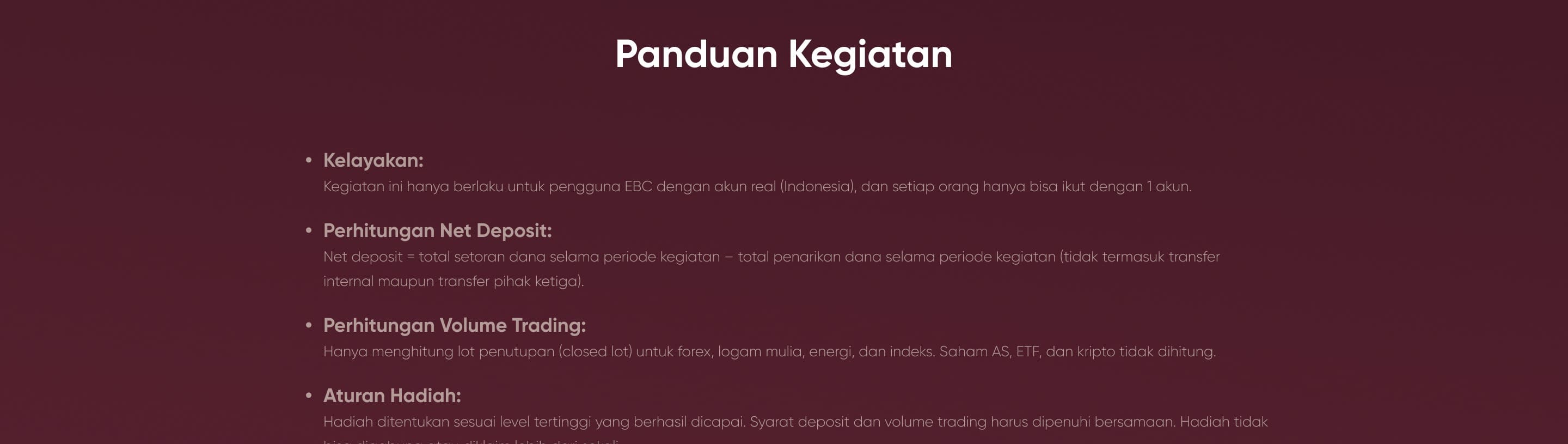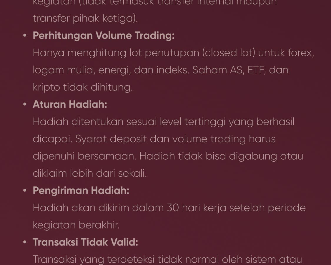 Peringatan Risiko:Perdagangan Kontrak untuk Perbedaan (CFD) adalah instrumen keuangan yang kompleks dan memiliki risiko tinggi untuk kehilangan uang dengan cepat karena penggunaan leverage. Perdagangan dengan margin membawa tingkat risiko yang tinggi dan mungkin tidak cocok untuk semua investor. Sebelum memutuskan untuk melakukan perdagangan Forex dan CFD, Anda harus mempertimbangkan dengan cermat tujuan perdagangan Anda, tingkat pengalaman, dan toleransi risiko Anda. Ada kemungkinan Anda bisa mengalami kerugian sebagian atau seluruh modal awal yang Anda investasikan. Kami menyarankan agar Anda mencari saran independen dan memastikan bahwa Anda sepenuhnya memahami risiko yang terlibat sebelum membuat keputusan investasi. Harap baca dengan seksama pernyataan pengungkapan risiko yang relevan sebelum melakukan perdagangan.
