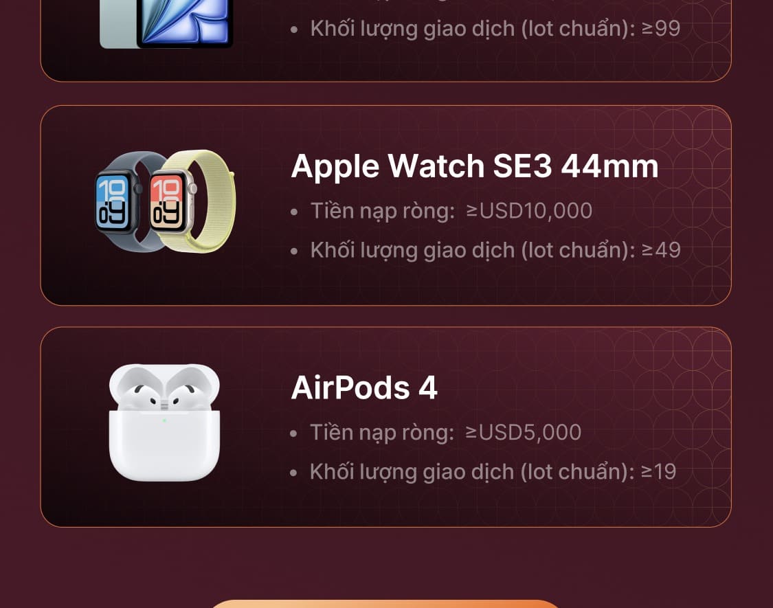 Cảnh báo rủi ro:Giao dịch Hợp đồng Chênh lệch (CFDs) là các công cụ tài chính phức tạp và tiềm ẩn rủi ro cao về việc mất tiền nhanh chóng do đòn bẩy. Giao dịch ký quỹ mang mức độ rủi ro cao và có thể không phù hợp với tất cả nhà đầu tư. Trước khi quyết định giao dịch Forex và CFDs, bạn cần cân nhắc cẩn thận mục tiêu giao dịch, mức độ kinh nghiệm và khả năng chấp nhận rủi ro của mình. Có khả năng bạn sẽ chịu lỗ một phần hoặc toàn bộ số vốn giao dịch ban đầu. Chúng tôi khuyến nghị bạn tìm kiếm lời khuyên độc lập và đảm bảo rằng bạn hiểu đầy đủ các rủi ro liên quan trước khi đưa ra bất kỳ quyết định đầu tư nào. Vui lòng đọc kỹ các tuyên bố tiết lộ rủi ro có liên quan trước khi giao dịch.