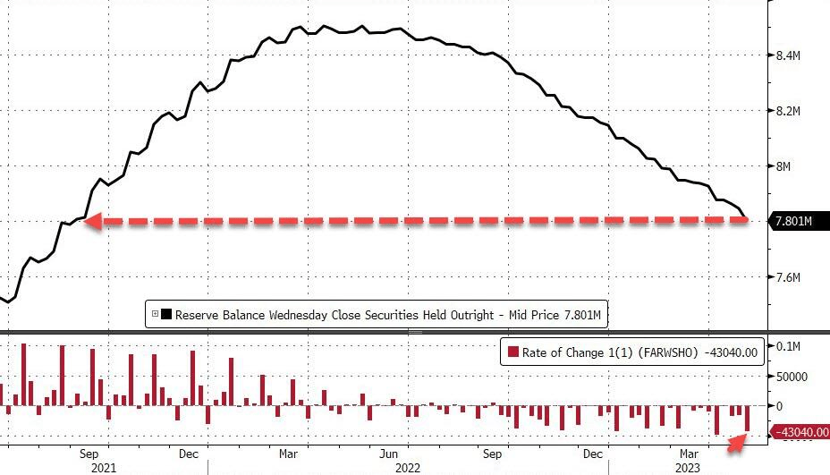 美联储资产负债表上直接持有的证券总额暴跌430亿美元至7.80万亿美元,降至2021年8月以来的最低水平。