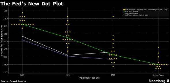尽管银行业近期动荡,美联储官员上周仍将利率上调了25个基点,继续打压物价上涨。此举将其政策基准利率提高至4.75%至5%的目标范围,与一年前的近零水平相比大幅上升。同时发布的预测显示,根据18位官员的中值预测,利率预计将在年底达到5.1%,意味着还有一次25个基点的加息。