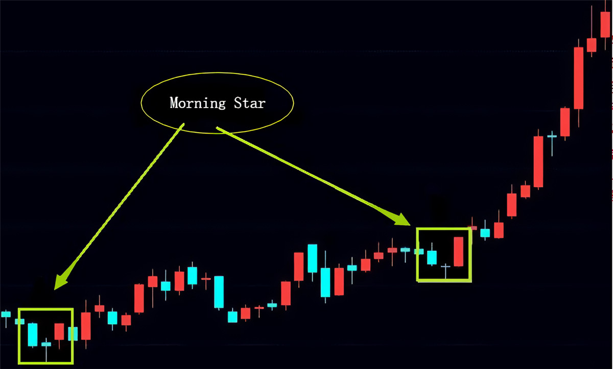 早晨之星是由三根K線組成的形態,標誌著行情見底並轉勢。這種形態的出現值得關注,因為它是一個明確的反轉訊號,為理想的買進時機。