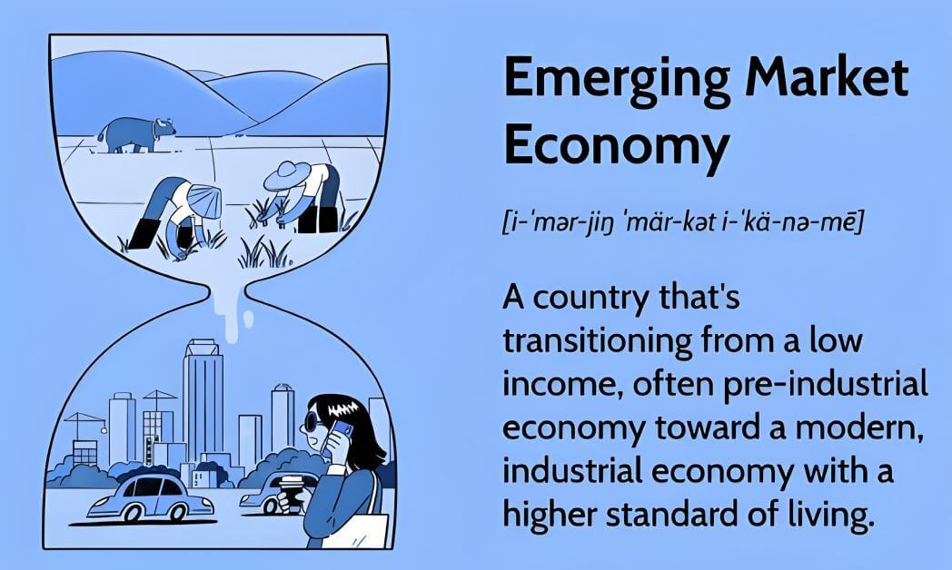 它是指那些經濟快速發展但尚未完全達到已開發國家水準的國家或地區。這些市場通常具有較大的經濟成長潛力,但市場成熟度相對較低,常伴隨著經濟改革、工業化和都市化的進程。